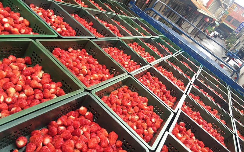 每日清晨至莓農處檢查並收取草莓